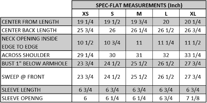 *Size chart is a general guide. It may include sizes that are unavailable for this item. All measurements are in inches unless otherwise noted. |
